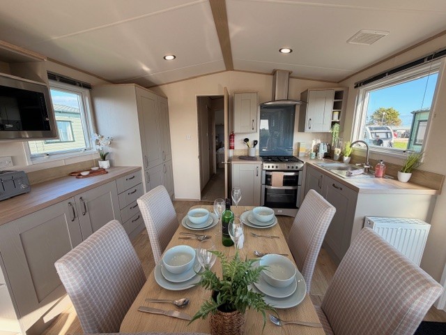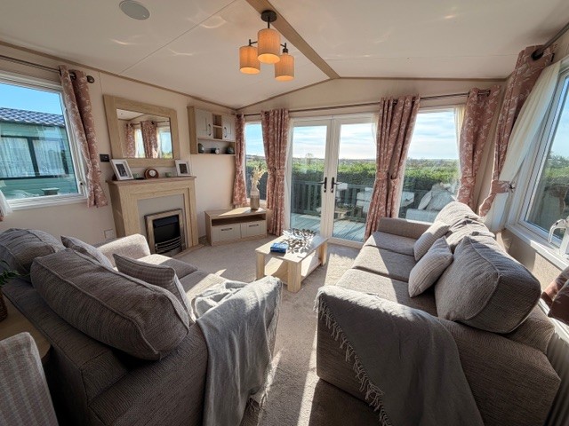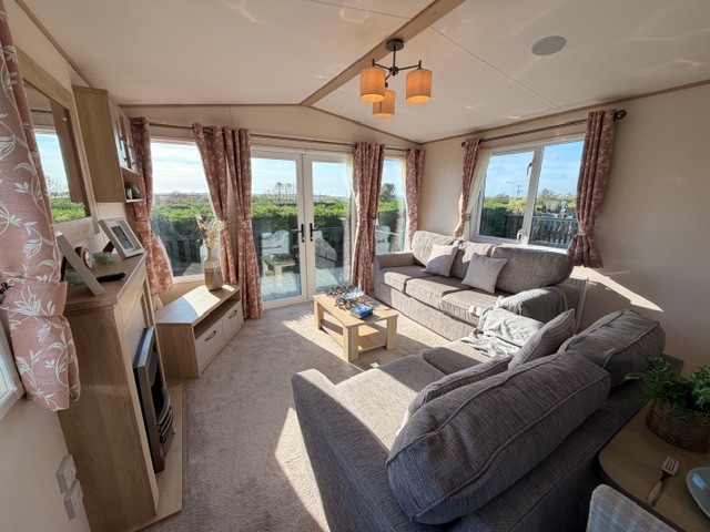 At an impressive 40ft in length, the ABI Windermere stands out with its contemporary exterior design, feature lighting recessed beneath expansive patio doors, and a stunning full-glass frontage that floods the interior with natural light.