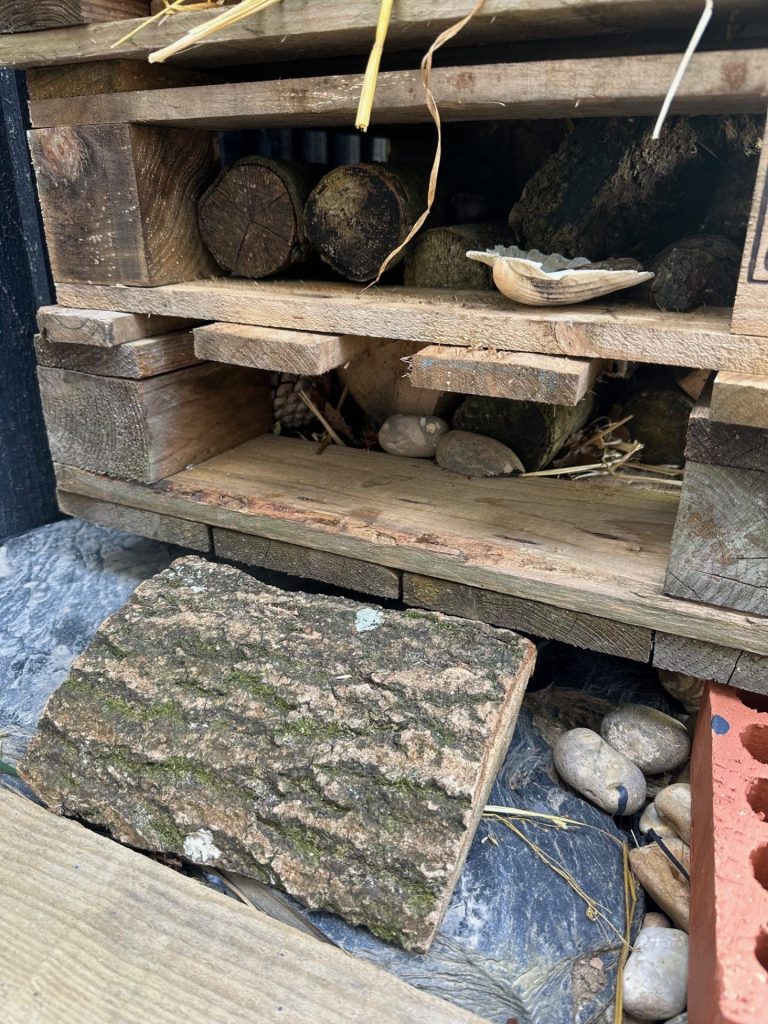 This project has been a fantastic way to engage young minds with the natural world. Under the guidance of Kelly’s Forest School, the children learned about the important role insects play in our ecosystem – from pollination to pest control – and how we can all do our part to protect them. Then, with plenty of enthusiasm (and muddy boots!), they got hands-on with the construction process, building bug-friendly spaces that are both educational and charming.