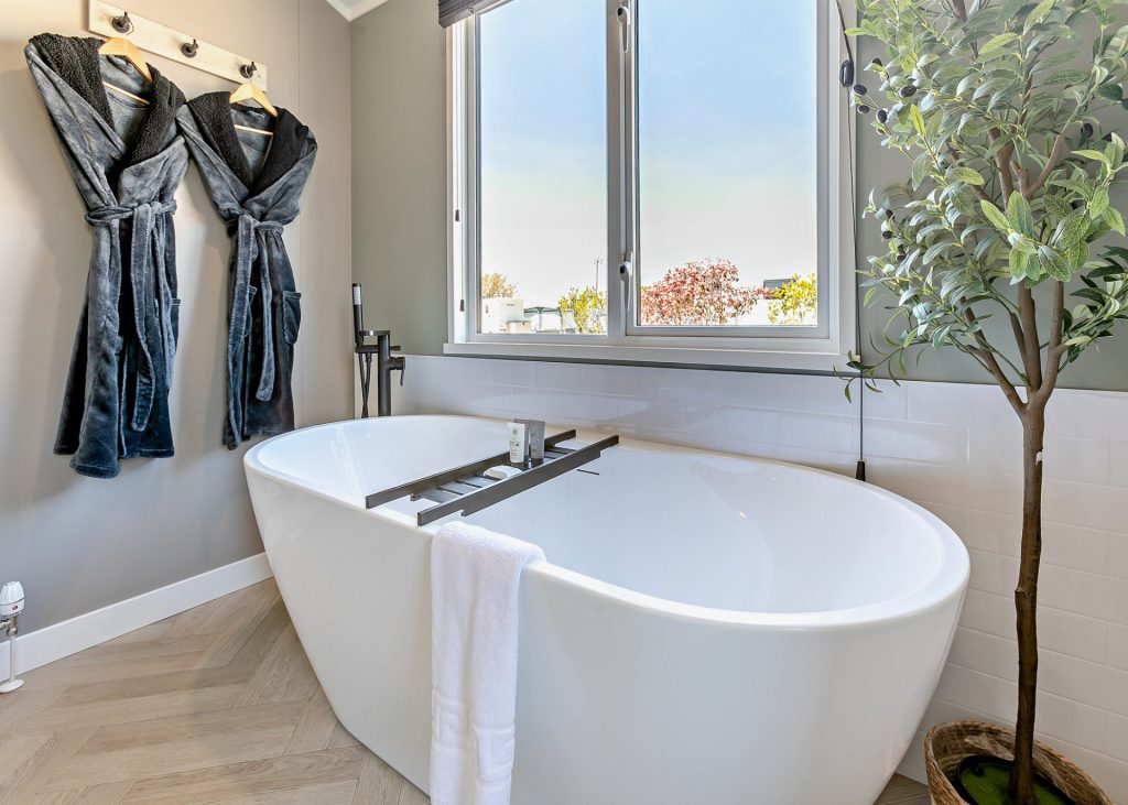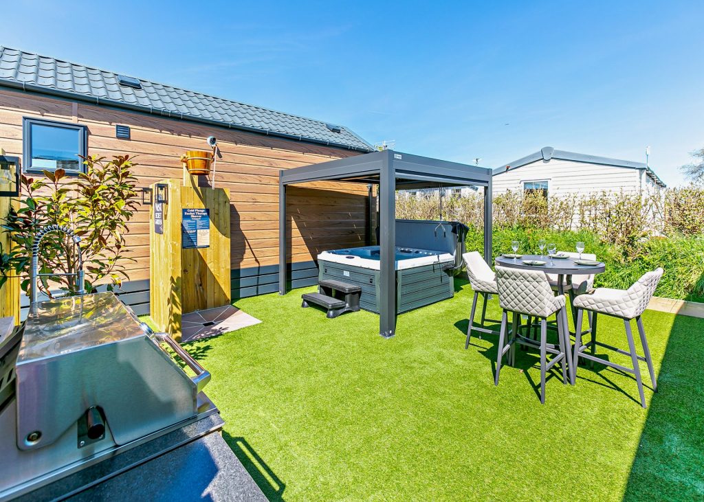 For the ultimate boutique retreat, choose The Nest—our premier accommodation at Trelay Holiday Park. Designed for those who appreciate the finer things, this exclusive hideaway offers a private garden with a luxury outdoor kitchen, complete with a BBQ, outdoor sink, and workspace, perfect for al fresco dining. Indulge in pure relaxation with your very own hot tub, nestled beneath a pergola with privacy screens, or awaken your senses with an outdoor bucket shower, ideal for those who love a refreshing cold-water therapy experience. Step inside, and The Nest continues to impress. With hotel-style finishes throughout, the master bedroom boasts a freestanding bath, adding a touch of indulgence to your stay. As expected, you'll also enjoy superfast Wi-Fi, a SMART TV, and all the comforts of a true luxury escape.